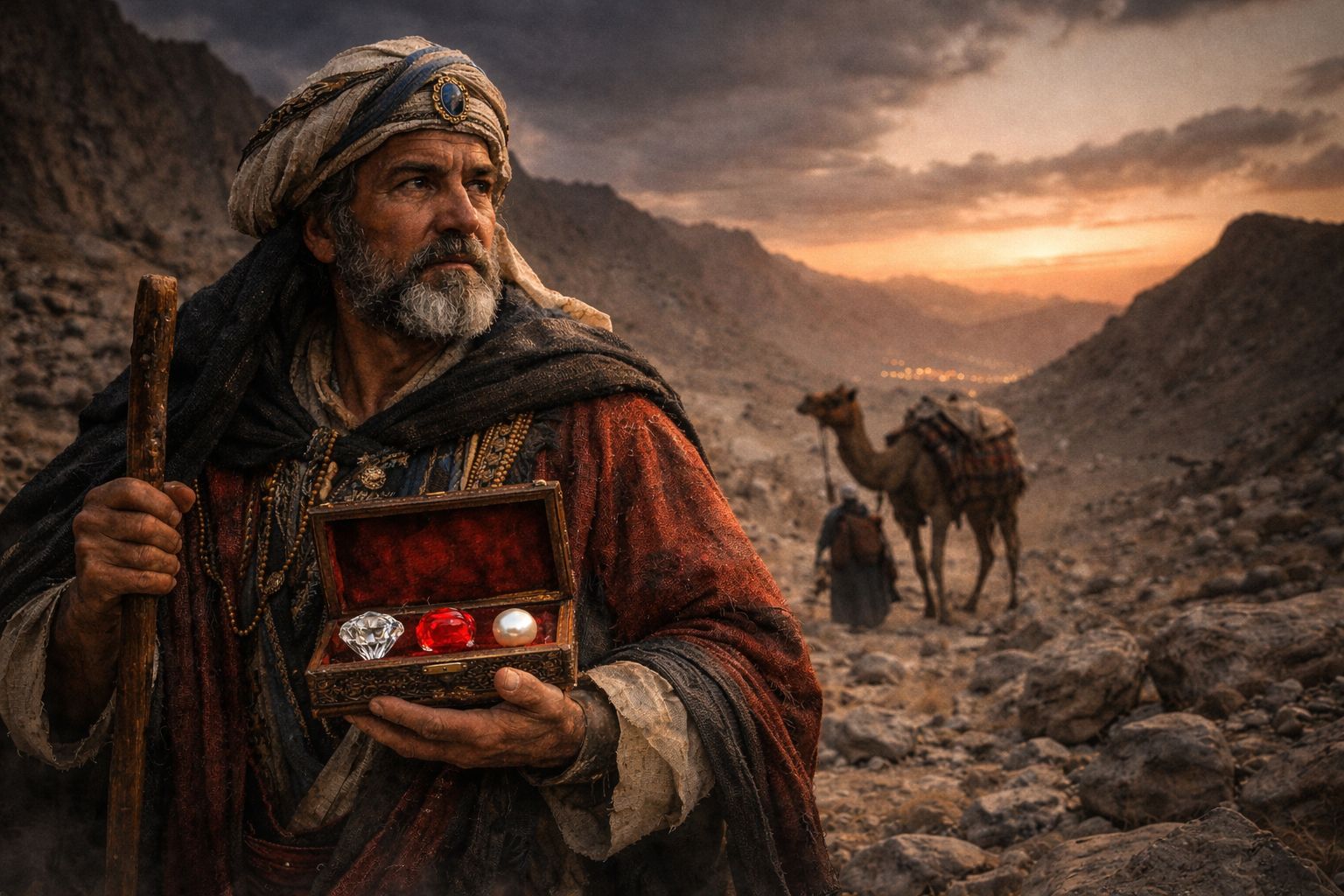 Llevó consigo un diamante 💎, un rubí ♦️ y una perla ⚪️ como regalos para el recién nacido (newborn), y trató (he tried) de unirse a Melchor, Gaspar y Baltasar en una antigua ciudad de Mesopotamia.